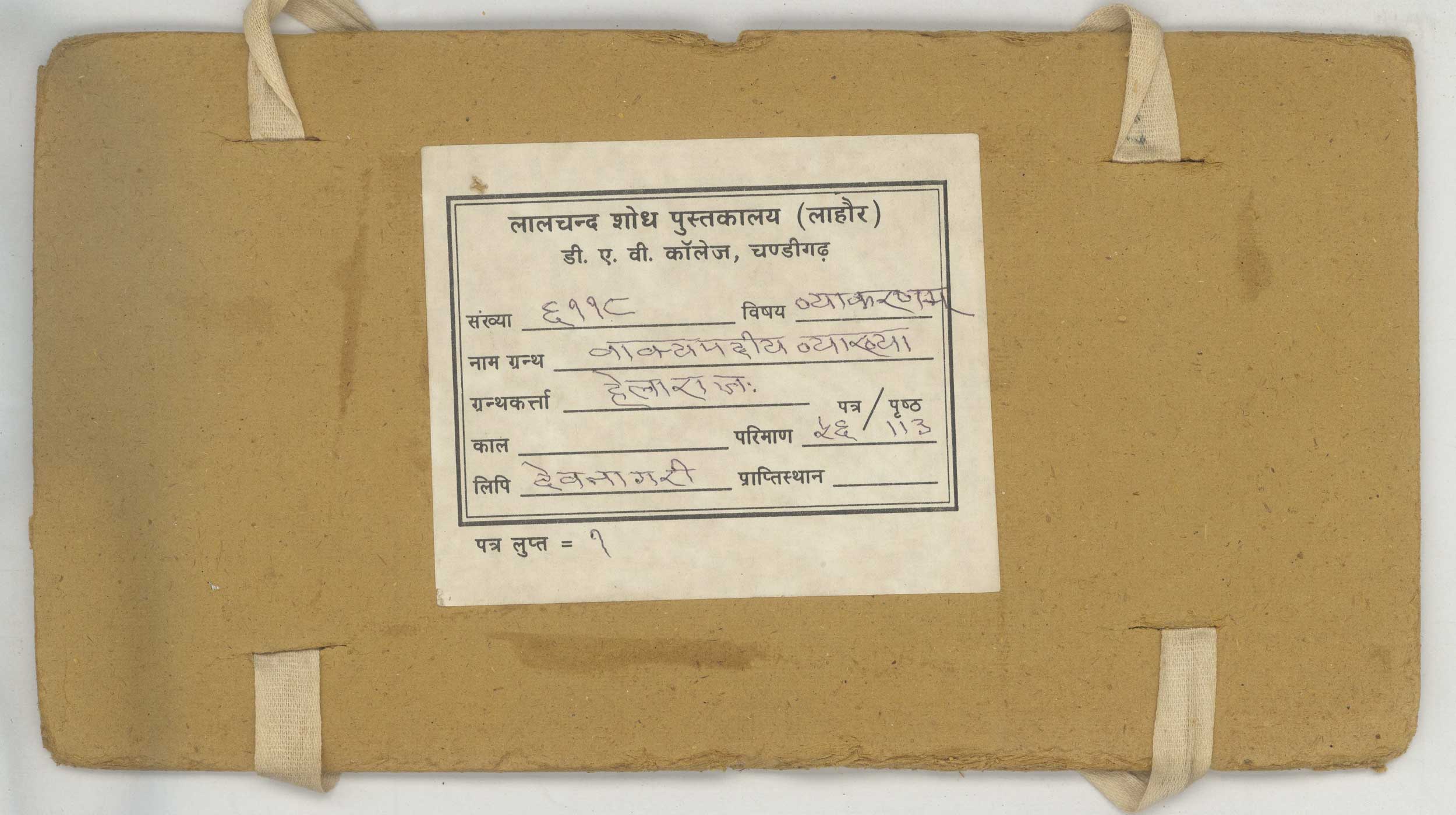 The Manuscripts and the translation work contained in this website is the property of Lalchand Research Library, DAV College, Sector 10, Chandigarh. Indorama Charitable Trust has the right to upload and translate the Manuscripts. The sole objective of undertaking this exercise is for the educational and research purposes. Viewers are not to sell, alter or further reproduce or distribute any part of the Manuscripts. Failure to comply with the terms of this warning will invite legal action against the transgressors.